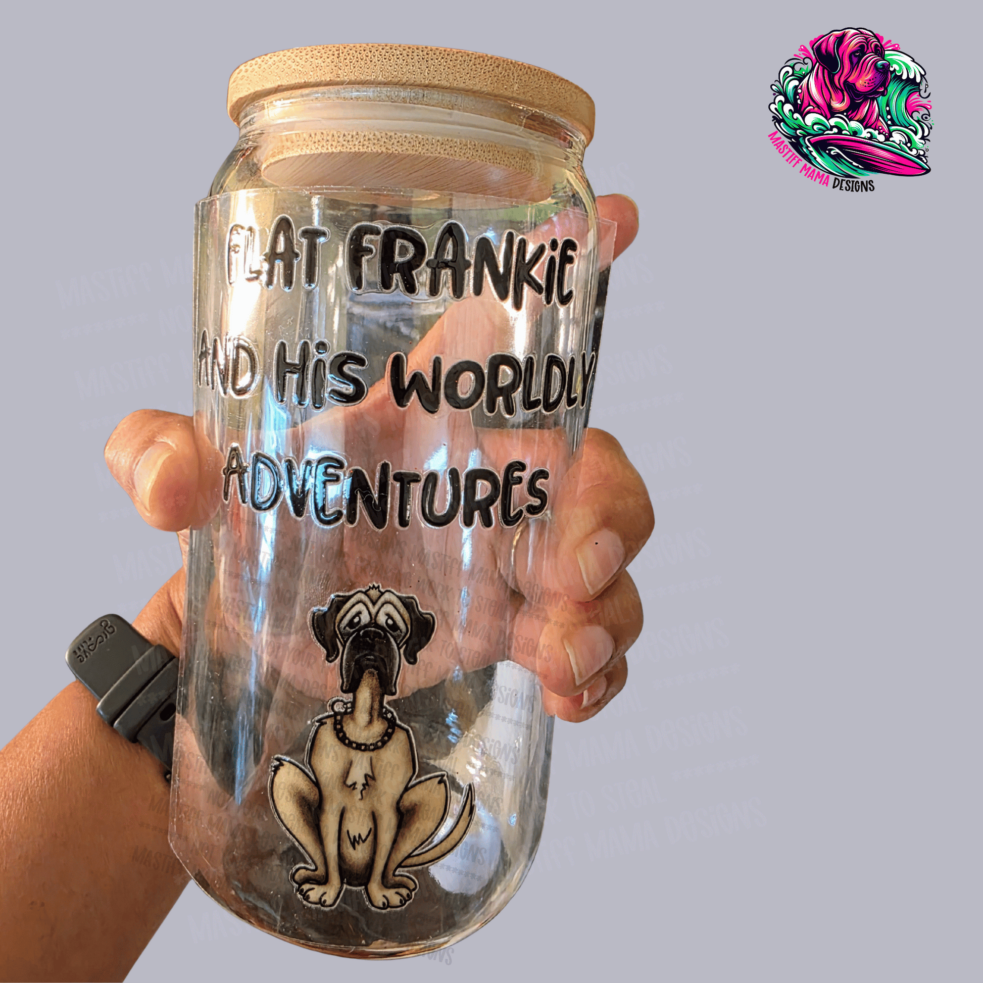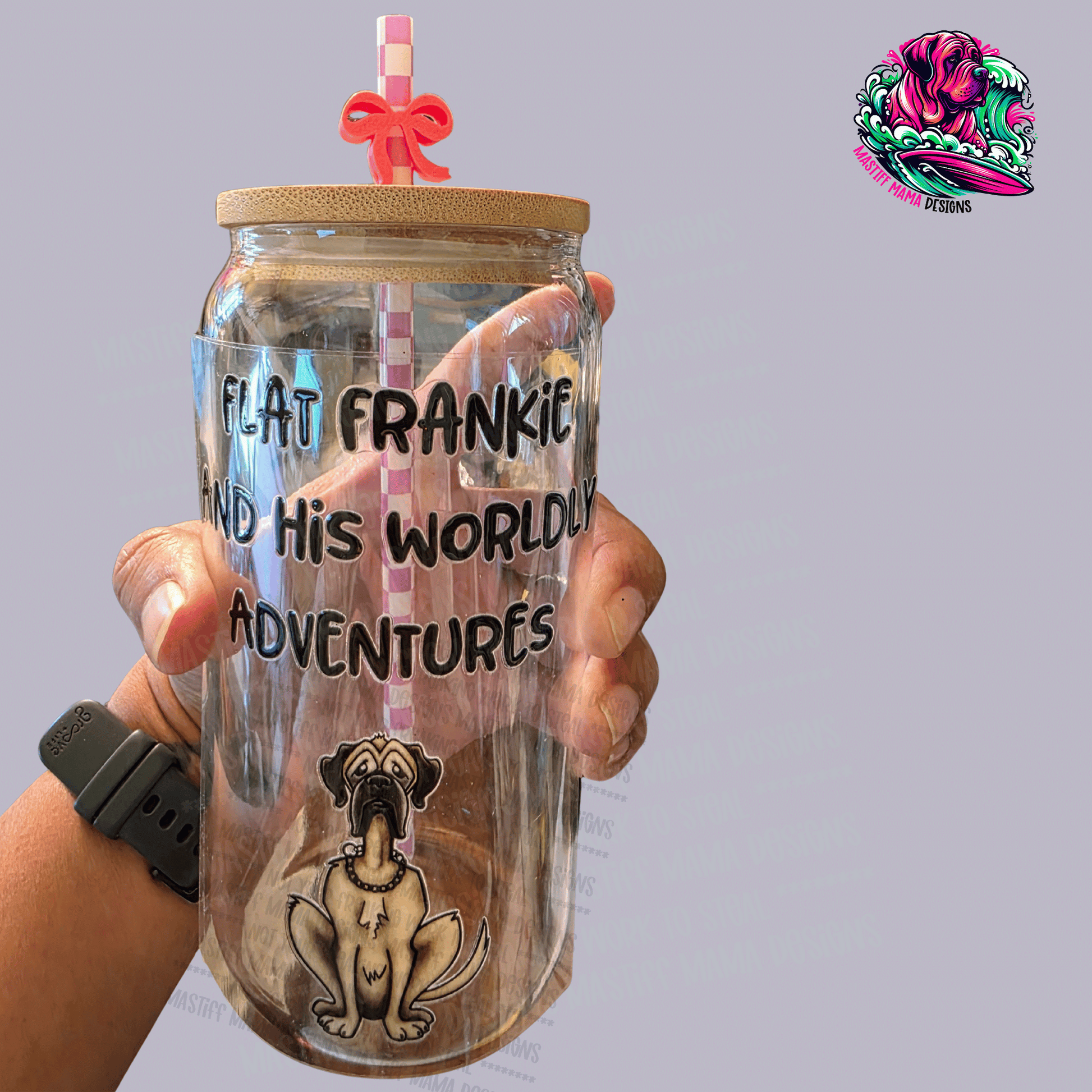 Flat Frankie And His Worldly Adventures Clear 16 oz Glass Can - Use Drop Down Box To Select Style