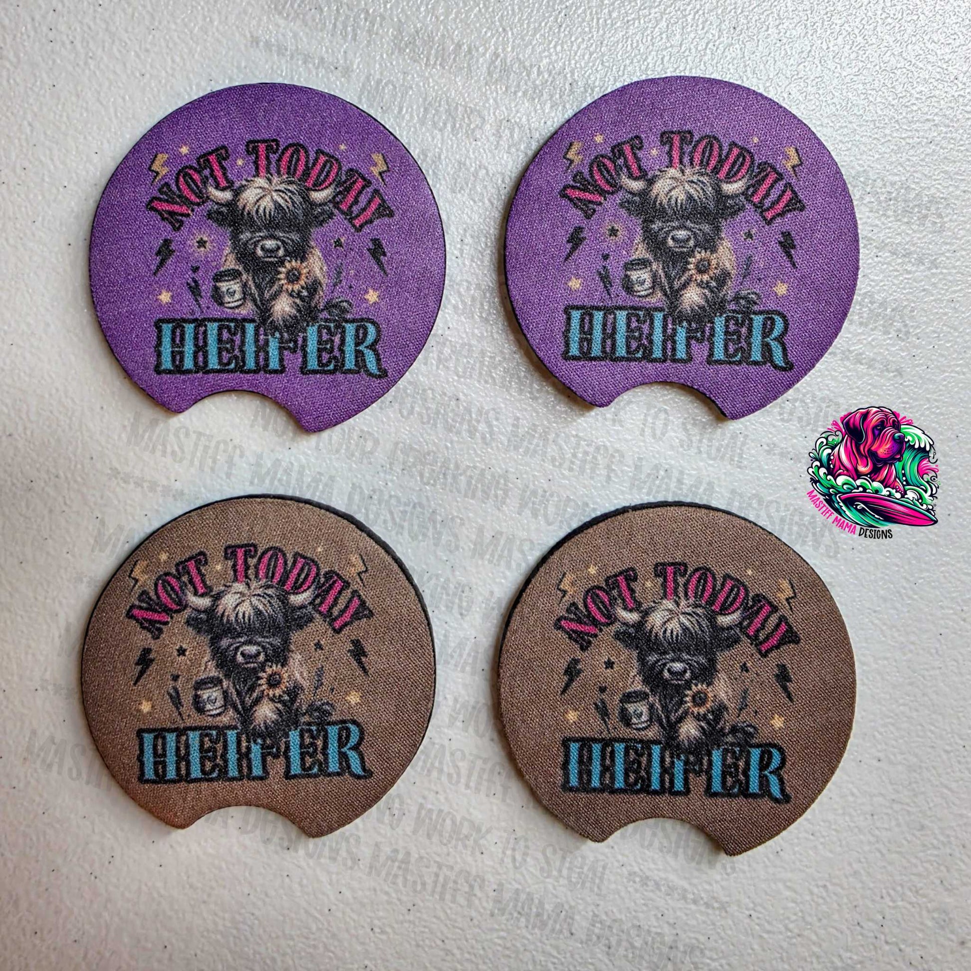 Not Today Heifer Neoprene Car Coaster Set of 2 - Use Drop Down To Select Color